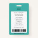 Ce badge de couleur turquoise est idéal pour les infirmières et les professionnels de la santé dans une gamme de services hospitaliers. Conçu avec une disposition verticale propre, il comporte une photo d'employé, nom, département, titre de poste et numéro d'identification pour une identification claire. Le dos offre de l'espace pour les coordonnées d'urgence, un code-barres pour une numérisation efficace, et le site Web de l'hôpital. Convient à divers milieux médicaux, y compris les services de chirurgie médicale, les unités de soins intensifs et d'autres services hospitaliers, ce badge allie sécurité, fonctionnalité et design moderne.