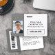 Un badge d'identité photo minimaliste et de style moderne avec un arrière - plan gris. Customisez avec le logo de votre entreprise et la photo de l'employé. Modifiez la couleur de l'arrière - plan ou laissez-le tel quel, et ajoutez un code à barres et d'autres informations sur le dos si nécessaire. Veuillez consulter les autres options de badge employé/entreprise dans la collection de badges photo personnalisées ID employé.