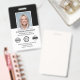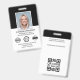 Créez une apparence professionnelle avec ce badge d'identification élégant. Un simple modèle personnalisé avec votre photo d'identité, nom, titre de travail, logo de l'entreprise et date d'expiration. Un espace est prévu pour votre logo et deux symboles d'accréditation. Les détails de retour sont au verso, ainsi que des informations supplémentaires, et un code à barres ou un code QR. Customisez le texte pour convenir à votre entreprise. Idéal pour de nombreux lieux de travail différents, y compris les professionnels d'entreprise, les consultants d'affaires, les vendeurs au détail, le personnel médical et plus. Couleurs imprimées : noir et blanc.