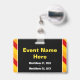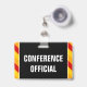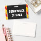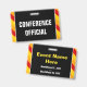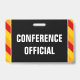 Cette conception de badge d'écumage comporte le message "CONFERENCE OFFICIAL". Il présente également des rayures jaunes, rouges et oranges qui attirent l'oeil. Le verso comporte un nom d'événement personnalisable et une ou plusieurs dates d'événement. [~Z0000286]