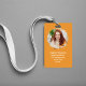 Stand out in style with this orange photo ID name tag badge — ideal for small business, corporate, or professional use. Featuring a personalized security ID layout with your photo, name, and company information, this design includes a modern QR code for quick digital connections. Its simple, clean, and modern aesthetic makes it the perfect blend of professionalism and functionality for any workplace.