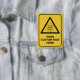 Panneau d'avertissement jaune en forme de triangle. Image personnalisée. Couleur arrière - plan personnalisée. Texte personnalisé.
