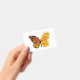 Papillon monarque orangé, détaillé avec aile décoré de pavot jaune et vibrant de Californie sur arrière - plan blanc.