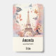 Étiquette nominative avec une image stylisée de la tour Eiffel entourée de jolis papillons et de délicates fleurs de jardin.