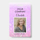 Parties scintillant moderne, purpel, salon, Carte d'identité de l'employé. Modifiez votre produit en quelques minutes en ajoutant vos données. Vous pouvez modifier la police/la couleur/la position par "personnalisation supplémentaire".