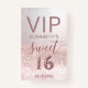 laissez-passer VIP. parties scintillant en or rose script sombre Sweet 16 VIP design.