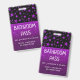 La parties scintillant en faux métal violet brille derrière une passe facile à lire et à mettre à jour. Mettre à jour le texte pour montrer le nom de l'enseignant et de l'école, ainsi que le but de l'insigne. Disponible dans beaucoup d'autres couleurs brillantes et des modèles étoiles.