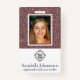 Ce badge d'identification personnalisé élégant et séduisant présente une parties scintillant rose, un design noir et blanc avec un échantillon de photo que vous pouvez remplacer par votre propre photo ou image. Un exemple de photo est imprimé sur un arrière - plan de parties scintillant faux rose et un logo est imprimé sous la photo dans la zone blanche solide. Un nom et un titre d'emploi sont imprimés sous le logo.