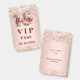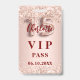 Un badge VIP moderne, élégant et glamour pour une Quinceañera, 15ème anniversaire. Un arrière - plan d'or rose décoré de confettis. Avec le texte : VIP. Personnalisez et ajoutez le nom et les détails du parti.