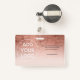 Passe photo d'employé rose moderne en feuille d'or métallique rose pastel, ajoutez votre photo, nom, titre, logo de l'entreprise.