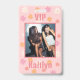 Passe VIP Marguerite Rose rétro pour l'enterrement de vie de jeune fille et les demoiselles d'honneur. Préparez-vous à une fête de célibataire avec ce passe VIP personnalisé ! Affichez le nom de la future mariée et « babe » dans une police grasse rétro tendance sur le devant. Le dos du cordon porte les mentions « VIP » et le nom et la photo de votre amie. Le passe VIP en forme de cordon est un excellent souvenir de l'enterrement de vie de jeune fille.