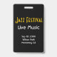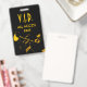 Personnalisez votre événement musical avec des badges verticaux VIP/Tout Accès. Musicien de Jazz stylisé avec image de cor. Texte doré net sur fond noir pour un effet maximum. Tous les détails sur l'avant et l'arrière peuvent être personnalisés ou supprimés, y compris les couleurs, les polices et l'image.