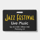 Personnalisez vos badges de passe VIP/Tout Accès pour événement musical. Musicien de jazz stylisé avec image de cor. Texte doré net sur fond noir pour un effet maximum. Tous les détails sur l'avant et l'arrière peuvent être personnalisés ou supprimés, y compris les couleurs, les polices et l'image.