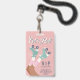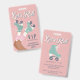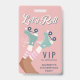 Patinage rose pastel amusant invitation à la fête d'anniversaire VIP "All Access" badge et fête pour n'importe quel âge avec "Let's Roll !" dans un script blanc, une illustration d'inspiration rétro de patins turquoises légers sur une fille à la peau foncée portant des chaussettes à tube rose et une typographie moderne bleu turquoise foncé. Le devant sert de badge aux filles à porter pendant la fête. Ajoutez les détails de l'invitation à l'arrière.