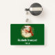 badge de nom personnalisé avec une image rétro montrant un Père Noël souriant et heureux entouré d'une couronne de pin avec une branche de saint dans son casquette.