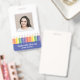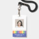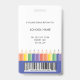Add a cheerful touch to your school’s professional image with this modern and customizable teacher ID badge. Featuring a fun rainbow pencil illustration with blue, and a clear photo template, it’s both practical and playful. Personalize the front with your name and teacher's grade, and easily add school details on the back. Perfect for preschool, kindergarten, and elementary school teachers who want to combine professionalism with a touch of creativity. This template comes with a barcode on the back. Upload your code and photo in the personalize this design section.
