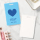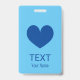 Badge personnalisé avec logo cœur bleu. Attache ou cordon rétractable en option. Design de modèle de typographie moderne. Ajoutez votre nom, titre, fonction, etc. Badges personnalisés pour employé de bureau, infirmière, personnel médical, personnel hospitalier, travailleurs de la santé, ambulancier, employés d'entreprise, chirurgien, médecin, bénévoles, collègues, secouristes, intervenants d'urgence, enseignants, infirmières, directeurs commerciaux, invités de maison de retraite, visiteurs, clients, étudiants en école d'infirmières, médecin, ambulancier, vétérinaire, etc. Couleurs et lettrage personnalisables. Disposition de base avec lettres claires et faciles à lire. Modifiez la quantité pour obtenir le prix en gros avantageux. Toutes les combinaisons de couleurs sont possibles. Forme verticale. Transfert vers tout autre produit sur Zazzle.