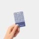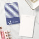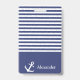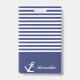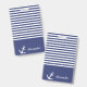 Un badge rayé bleu marine et blanc peut être personnalisé avec votre nom. Une ancre blanche est à côté de votre nom. Au-dessus du nom, il y a des rayures horizontales bleu marine et blanches.
