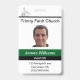 Badge d'église personnalisé pour un pasteur, bien qu'il puisse être personnalisé pour tout employé d'église. Chaque partie de ce badge d'identification peut être modifiée pour répondre à vos besoins. Le nom de l'église, la photo du membre du personnel, le titre de la personne et l'adresse et le numéro de téléphone peuvent tous être personnalisés. Il y a également un numéro d'identification au dos qui peut être modifié ou supprimé.