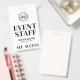 Votre Logo Blanc Arrière - plan Polices Noires Tous Accès Insigne Du Personnel De L'Événement. Parfait pour les défilés de mode, les concerts, les conférences, les conférences ou tout événement spécial où vous voulez faire sentir aux invités l'importance, y compris les fêtes d'anniversaire. Ce badge présente un design épuré et moderne avec un arrière - plan blanc et des polices noires. En haut, il y a un espace pour ajouter le nom ou le logo de votre entreprise. Ci-dessous, "Event Staff" s'affiche dans une police serif en gras, associée à une typographie simple pour le nom de l'événement, la date et "All Access Pass". Entièrement personnalisable, vous pouvez modifier le texte, les polices et les couleurs selon vos besoins.