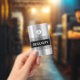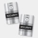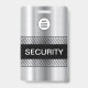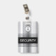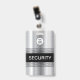 Badges de personnel de sécurité modernes et cools conçus avec un fond métallisé argenté imprimé numériquement qui imite l'aspect du métal brossé et un modèle de logo que vous pouvez remplacer par votre logo d'entreprise et le mot Sécurité imprimé avec le design affiché des deux côtés. Une vision moderne de la sécurité d'entreprise dans un design économique.