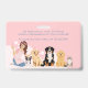 Create a fun and professional look for your pet care team with our colorful Pet Groomer Employee ID Badge. The front of the badge features playful illustrations of adorable dog breeds and a cute cat surrounded by cheerful soap bubbles, giving it a bright and friendly grooming salon vibe. Personalize the front with your employee name, job title, employee ID number, and business portrait photo for a polished and professional staff badge. The reverse side includes space to add business contact information, phone number, website, or emergency details, along with a charming illustration of our friendly groomer wearing a blush pink striped apron, kneeling behind several happy dog breeds and a cat.