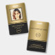 Photoshop moderne avec photo sur un arrière - plan or et logo. Des informations supplémentaires peuvent être ajoutées à l'arrière de ce badge d'identification professionnelle