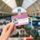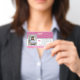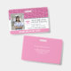 Badge photo d'identité avec logo d'infirmière, photo personnelle et informations personnalisables.