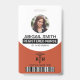 Modèle de badge de photo de personnel médical avec infirmière diplômée en terre cuite et caducée avec code-barres. Il comporte votre nom, titre et photo sur fond blanc tandis que le symbole du caducée et le code-barres sont de couleur terre cuite.