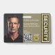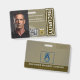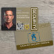 Badge d'identification professionnel pour les agents de sécurité privée avec votre nom, titre, photo, code QR, numéro d'identification et date d'expiration. Inclut la marque et les coordonnées de votre entreprise au verso. Un design élégant marron et or idéal pour les uniformes formels et les patrouilles de site.