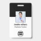 Personnalisez facilement ce badge personnalisé de nom d'employé avec photo, code de barre d'analyse, logo et nom de l'entreprise, ainsi que plusieurs champs de texte personnalisés.