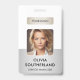 Un badge d'identité d'entreprise moderne et élégant conçu dans une palette de couleurs argentées. Facilement personnalisable avec une photo d'employé, son nom, son titre, le logo de l'entreprise, son code QR et d'autres détails commerciaux. La mise en page comporte une typographie propre pour une apparence professionnelle et claire, assurant une identification facile. Ce badge d'identification est disponible avec des options pour un cordon, un clip métallique ou un support rétractable. Aucune commande minimale requise.