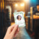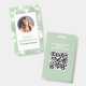 Ce design comprend un badge photo employé, parfait pour toute entreprise professionnelle, avec des feuilles botaniques de palmiers, et un code à barres de code QR, avec nom et titre, Il est parfait pour les marques, le commerce de détail moderne, ou entreprise, de grandes fournitures de bureau, et aussi idéal pour les salons et congrès
