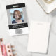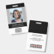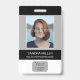 Ce badge d'employé noir et gris moderne de base comporte une grande zone de photo et un emplacement pour insérer votre logo d'entreprise. Au dos, il y a une zone pour ajouter votre propre code-barres.