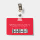 Personnalisez facilement ce badge personnalisé horizontal avec photo, code-barres ou code QR et logo d'entreprise. Un design simple pour les entreprises dans toutes les couleurs vives et accrocheuses rouge et blanc pour les logos blancs ou clairs, entièrement personnalisable sur les tailles avant et arrière, avec des polices basiques et modernes sans serif et un aspect professionnel et clair. Ces badges d'identification de sécurité standard sont disponibles avec un cordon, un clip métallique ou rétractable. Vous pouvez personnaliser vos cartes de badge d'identification en choisissant n'importe quelle couleur de fond et n'importe quel style de police avec l'éditeur de conception graphique en cliquant sur "personnaliser davantage". Aucune commande minimum.