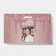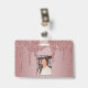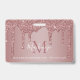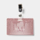 Badge photo de monogramme scintillant à paillettes rose girly avec des gouttes de paillettes rose or/rose sur un fond chic avec votre monogramme et nom personnalisés. Parfait pour quiconque aime le style de vie glamour de luxe. Parfait pour votre esthétique de luxe ! Vous êtes baigné de luxe - montrez-le ! Veuillez nous contacter à cedarandstring@gmail.com si vous avez besoin d'aide pour la conception ou les produits correspondants.