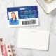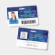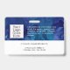 Personnalisez ce badge d'identification horizontal avec une photo d'employé, un nom, un titre, un nom d'hôpital / d'entreprise, un lieu, un numéro d'identification d'employé et un code-barres. Le fond présente des aquarelles à l'encre bleue. Le verso du badge présente votre logo et des champs de texte personnalisés supplémentaires pour les informations de retour ou d'autres détails. Parfait pour les établissements médicaux ou les entreprises qui ont besoin d'une identification de sécurité.