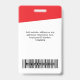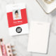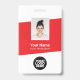 Personnalisez facilement ce badge de nom d'employé moderne personnalisé avec photo, code-barres et logo d'entreprise. Un design d'entreprise simple en couleurs rouge et blanc entièrement personnalisable en tailles avant et arrière, polices basiques et modernes sans serif et un look professionnel et clair. Disponible avec un cordon, un clip métallique ou rétractable. Aucune commande minimum.