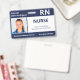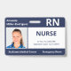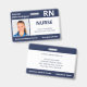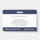 Gardez votre hôpital ou votre cabinet médical en sécurité avec des badges d'identification personnalisés horizontaux comportant la photo de votre employé, son nom, l'abréviation de son poste, son titre, son numéro d'identification et le nom de l'entreprise. Vous pouvez également inclure un département si vous le souhaitez. Parfait pour une infirmière ou un autre membre du personnel. Au verso, vous pouvez ajouter plus d'informations, telles que l'endroit où retourner le badge s'il est perdu. Personnalisez-le avec une photo et un texte personnalisé dans la barre latérale. La photo carrée sur la gauche a une fine bordure blanche entourée de bandes bleu marine en haut et en bas et de fines lignes bleu marine sur les côtés. Un bloc blanc sur le côté droit central met en évidence le titre du poste, le numéro d'identification et la date d'expiration en texte bleu foncé. Le nom du membre du personnel, l'acronyme du poste et le texte de l'hôpital ou de l'entreprise sont blancs sur fond bleu marine.