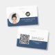 Personnalisez facilement ce badge de nom d'employé minimaliste horizontal personnalisé avec photo, code Qr ou code de barre d'analyse et logo d'entreprise. Un design d'entreprise simple avec photo ronde, en bleu marine et blanc entièrement personnalisable en tailles avant et arrière, sans-serif polices de base et moderne et un look professionnel et clair. Disponible avec cordon, clip métallique ou avec rétractable. Pas de commande minimum.