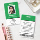 Badge Photo d'employé vert personnalisée, Code barre, Lo