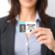 Un design d'entreprise de base qui met en évidence les logos de votre bureau et le nom de votre employé. Vous pouvez ajouter un code à barres d'analyse à l'avant et à l'arrière. Vous pouvez également modifier la couleur de l'arrière - plan.