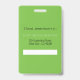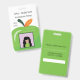 Un badge d'identification vertical pour les membres du personnel de votre école avec une pomme verte en gras et un petit cadre autour de la photo. Personnalisez-le avec la photo de l'employé (une photo carrée fonctionne le mieux), le nom, le titre de poste, l'année et le nom de l'école sur le devant. Assurez-vous de le personnaliser avec le nom et l'adresse de votre établissement au dos. Le rectangle blanc est conçu pour la signature de l'employé ou pour un code-barres. Un clip métallique, un cordon ou un enrouleur sont disponibles à l'achat en plus du badge si vous en avez besoin.