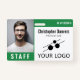 badge d'identification de l'employé avec un design propre en vert et blanc. badge d'identification de l'employé personnalisé avec photo, nom, titre, numéro d'identification et logo de votre entreprise.