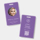 La carte QR de photo de carte d'identité d'employé moderne est un moyen élégant et professionnel de mettre en valeur les informations de vos employés, avec des fonctionnalités personnalisables pour s'adapter à votre marque. Ce badge comprend une photo, un logo et un nom, tous affichés sur un fond violet minimaliste. La carte de haute qualité est durable et résistante, parfaite pour une utilisation quotidienne dans n'importe quel lieu de travail. Les éléments personnalisables en font une solution polyvalente et pratique pour toute entreprise ou organisation.