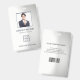 Carte d'identité professionnelle moderne avec code-barres sur fond gris dégradé. Des informations supplémentaires peuvent être ajoutées au verso de ce badge d'identification professionnelle