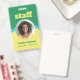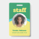 Badge d'identification vertical unilatéral pour votre personnel dans un design rétro en vert, jaune et bleu. Personnalisez avec la photo de votre employé, son nom et son titre sous le personnel dans une police jaune gras qui attire l'attention. Le badge est simple et facile à lire, imprimé sans logo, dans des couleurs vives et audacieuses.