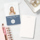 Un simple badge d'identité photo de nom médical moderne conçu comme un modèle en ligne pour un établissement de soins de santé ou un hôpital avec la possibilité de remplacer la photo du personnel, le modèle du logo, le nom de l'employé et le titre professionnel. À l'arrière, ajoutez des informations supplémentaires telles que l'adresse de retour, le code à barres et le numéro d'identification de l'employé. Idéal pour les logos d'entreprise ronds.