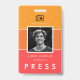Une étiquette de nom moderne et minimaliste et un badge photo Presse ID, parfait pour toute profession d'information : journalistes, reporters, photographes, etc... Couleurs arrière - plans entièrement personnalisables. Vous pouvez aussi facilement ajouter votre code barre ou code QR pour la sécurité.