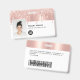 Personnalisez facilement ce badge personnalisé de nom d'employé avec photo, code de la barre d'analyse et logo de l'entreprise, avec clip métallique inclus. Un design féminin tendance aligné à gauche dans la fausse feuille et la parties scintillant en or rose mignon goutte entièrement personnalisable dans les tailles avant et arrière, sans-serif polices de base et moderne et un look professionnel et clair. Disponible avec ou sans nacelle, clip métallique ou avec rétractable. Pas de commande minimum.